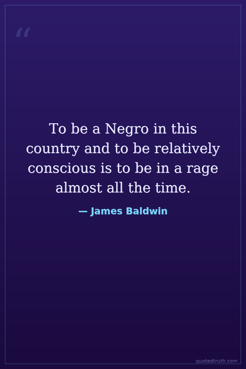 To be a Negro in this country and to be relatively conscious is to be in a rage almost all the time.