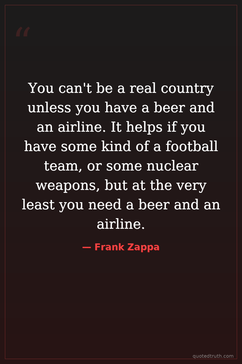 You can't be a real country unless you have a beer and an airline. It helps if you have some kind of a football team, or some nuclear weapons, but at the very least you need a beer and an airline.