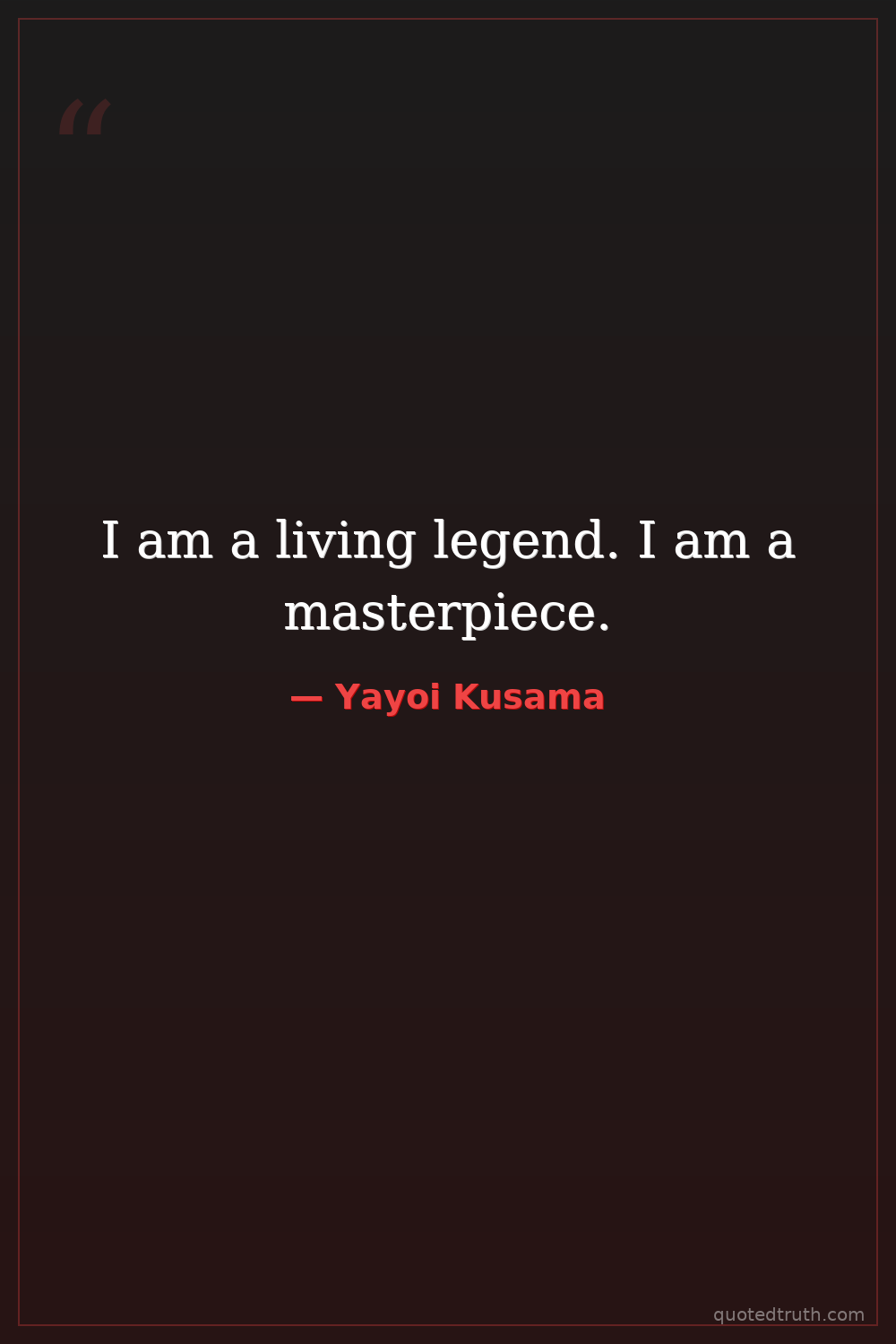 I am a living legend. I am a masterpiece.