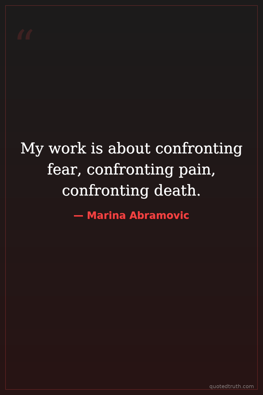 My work is about confronting fear, confronting pain, confronting death.