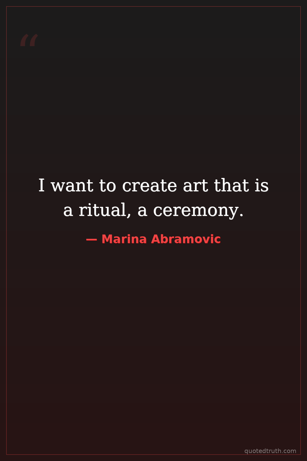 I want to create art that is a ritual, a ceremony.