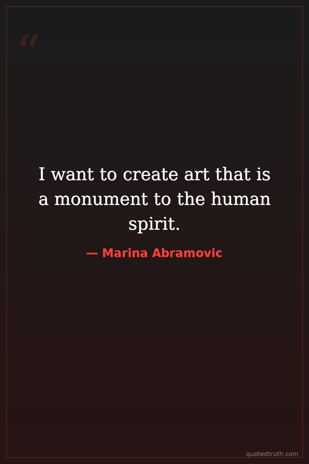 I want to create art that is a monument to the human spirit.