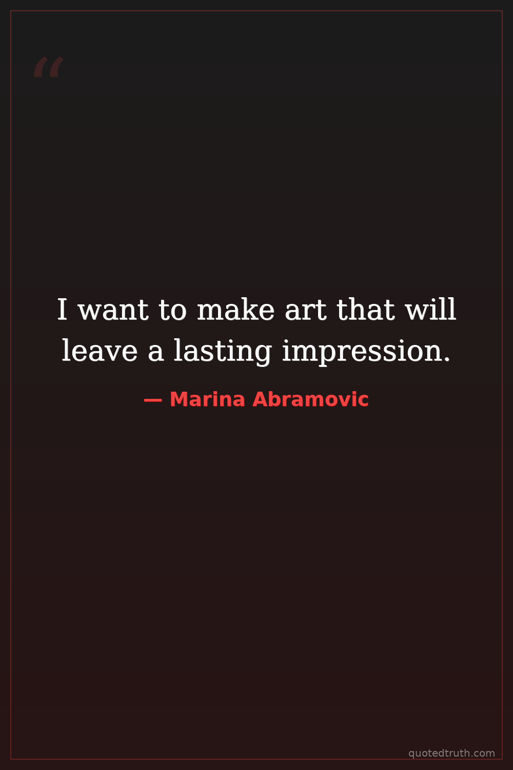 I want to make art that will leave a lasting impression.