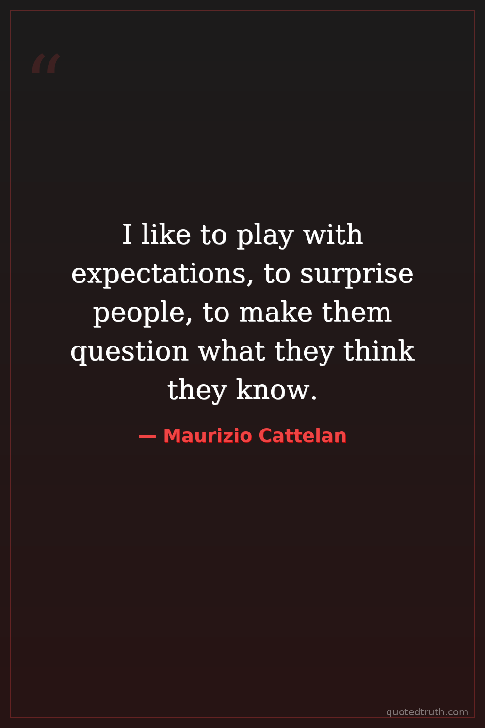 I like to play with expectations, to surprise people, to make them question what they think they know.