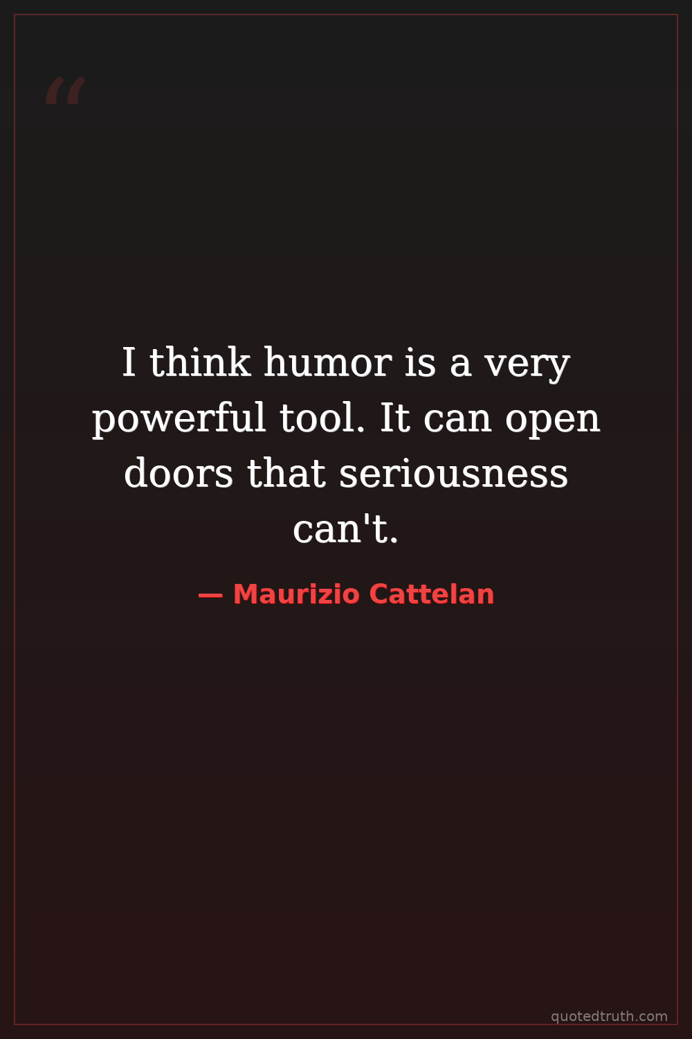 I think humor is a very powerful tool. It can open doors that seriousness can't.