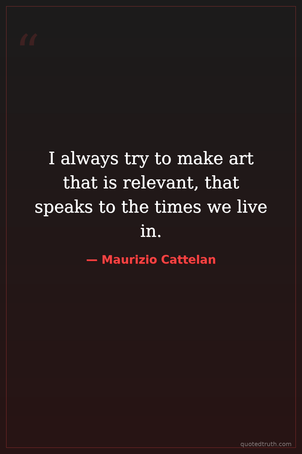 I always try to make art that is relevant, that speaks to the times we live in.