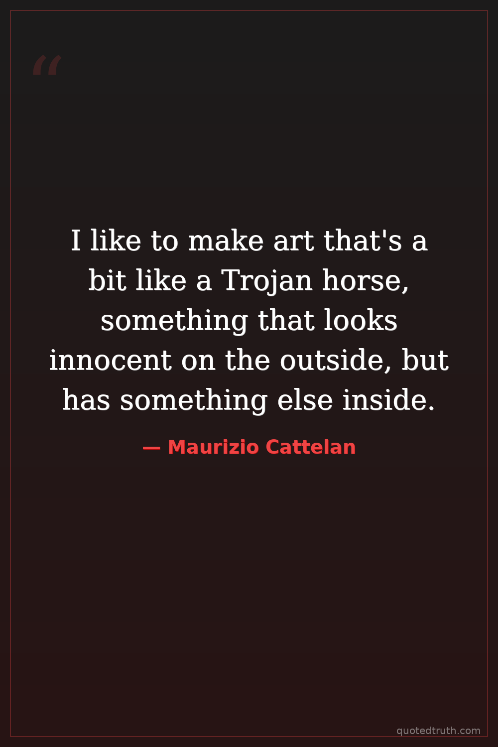 I like to make art that's a bit like a Trojan horse, something that looks innocent on the outside, but has something else inside.