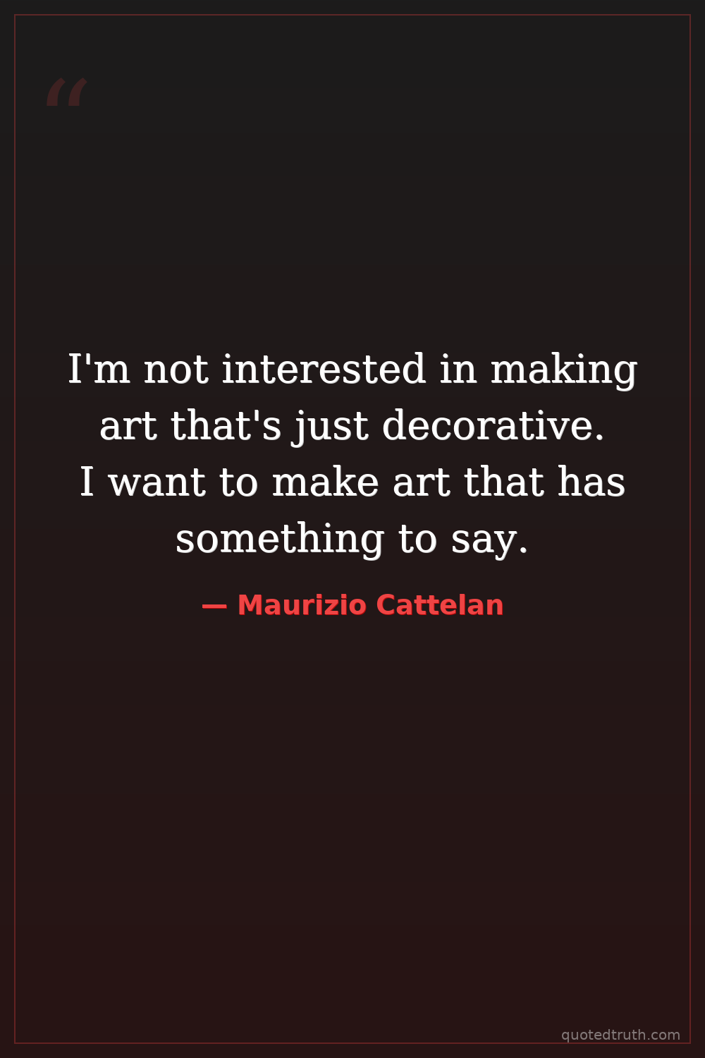 I'm not interested in making art that's just decorative. I want to make art that has something to say.