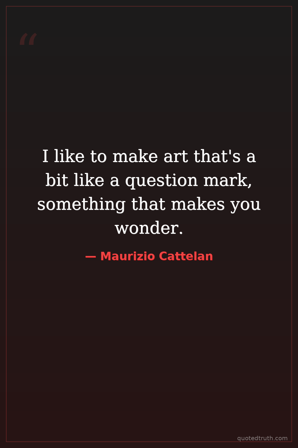 I like to make art that's a bit like a question mark, something that makes you wonder.