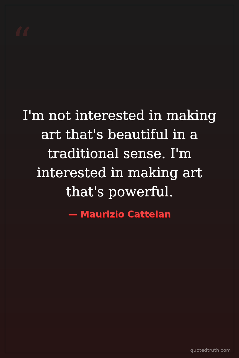 I'm not interested in making art that's beautiful in a traditional sense. I'm interested in making art that's powerful.