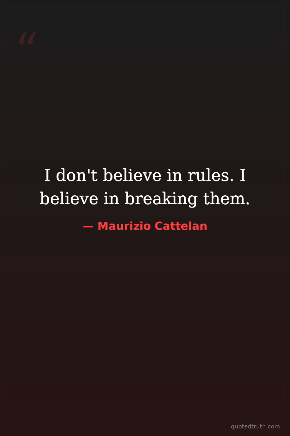 I don't believe in rules. I believe in breaking them.
