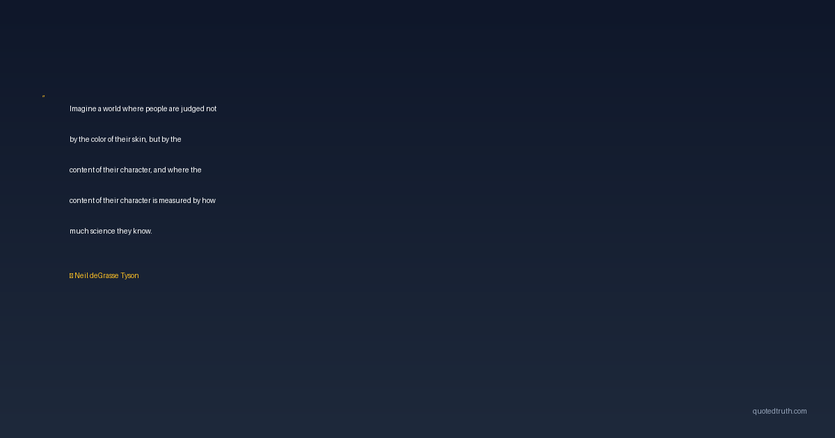 Imagine a world where people are judged not by the color of their skin, but by the content of their character, and where the content of their character is measured by how much science they know.