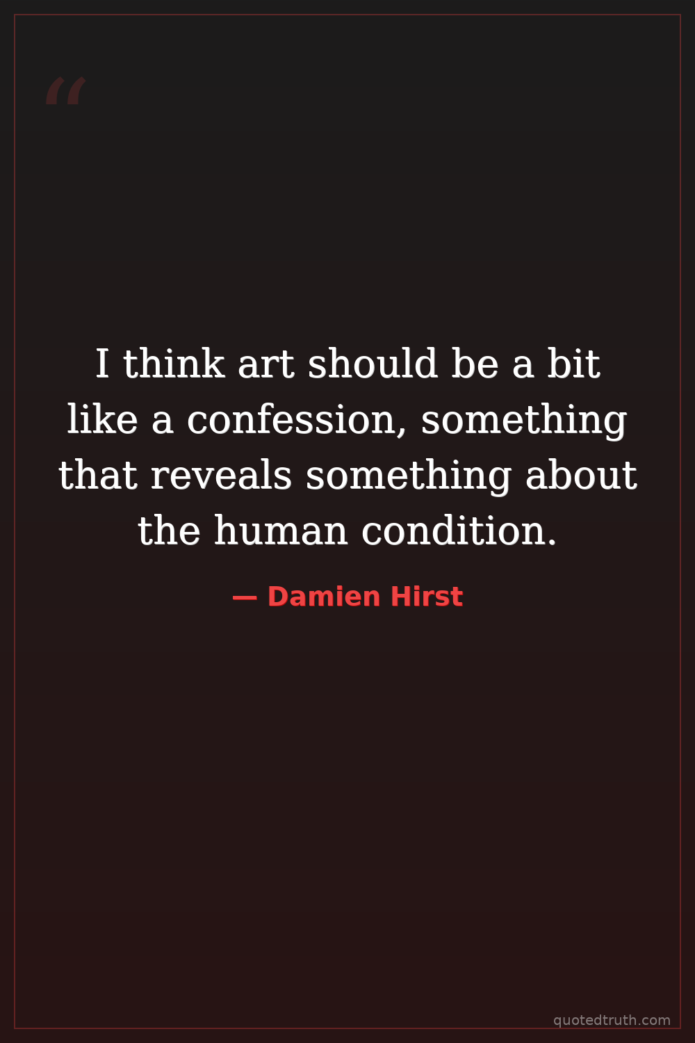 I think art should be a bit like a confession, something that reveals something about the human condition.