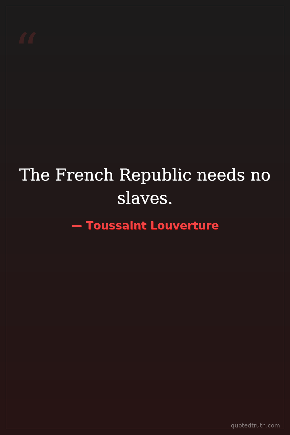 Controversial"Brothers and friends, I am Toussaint Louverture; perhaps my name has made itself known to you. I have undertaken vengeance. I want Liberty and Equality to reign in St. Domingue. I am working to make t…"
