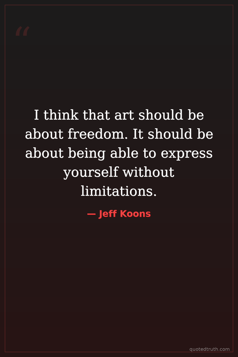 I think that art should be about freedom. It should be about being able to express yourself without limitations.
