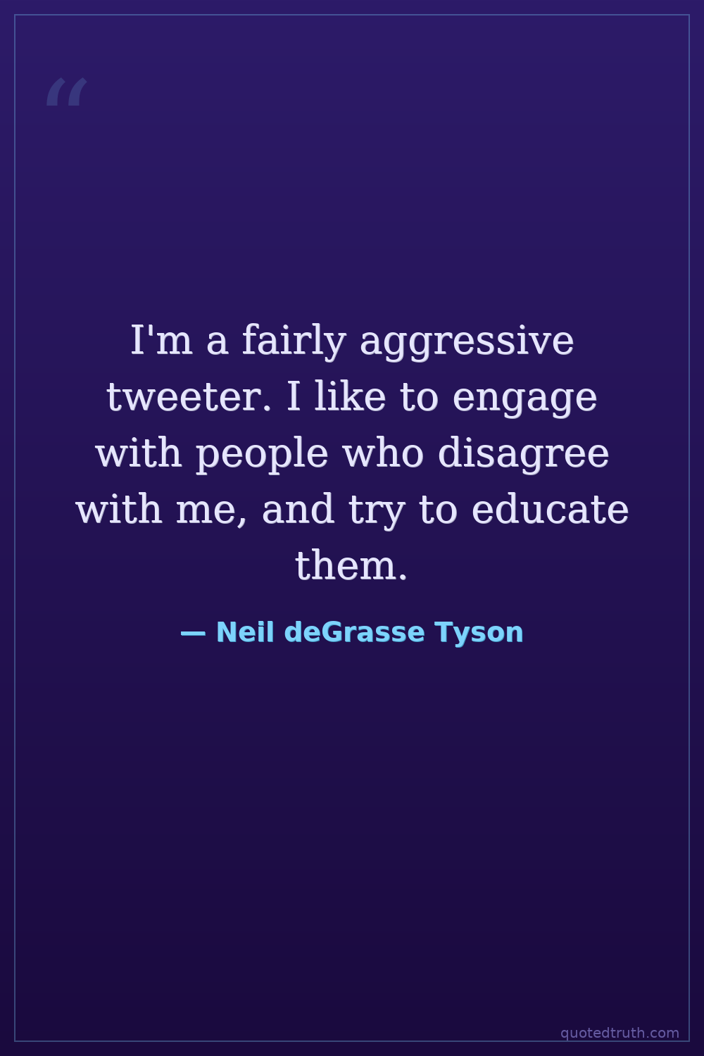 I'm a fairly aggressive tweeter. I like to engage with people who disagree with me, and try to educate them.