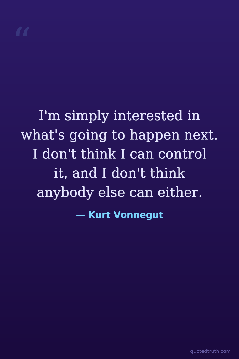 I'm simply interested in what's going to happen next. I don't think I can control it, and I don't think anybody else can either.