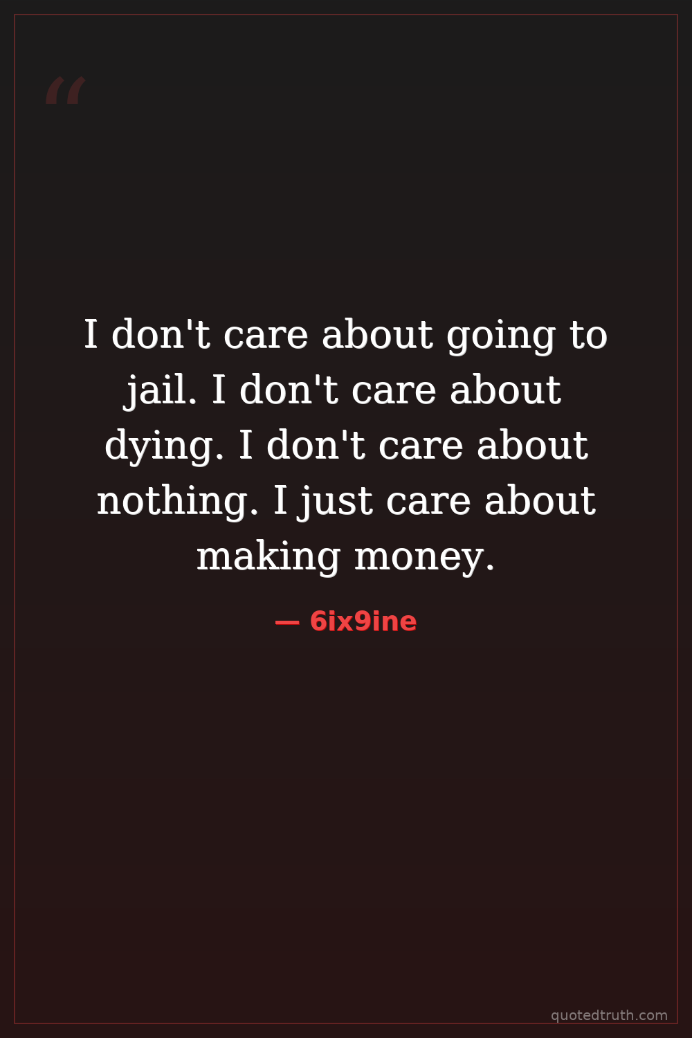 I don't care about going to jail. I don't care about dying. I don't care about nothing. I just care about making money.