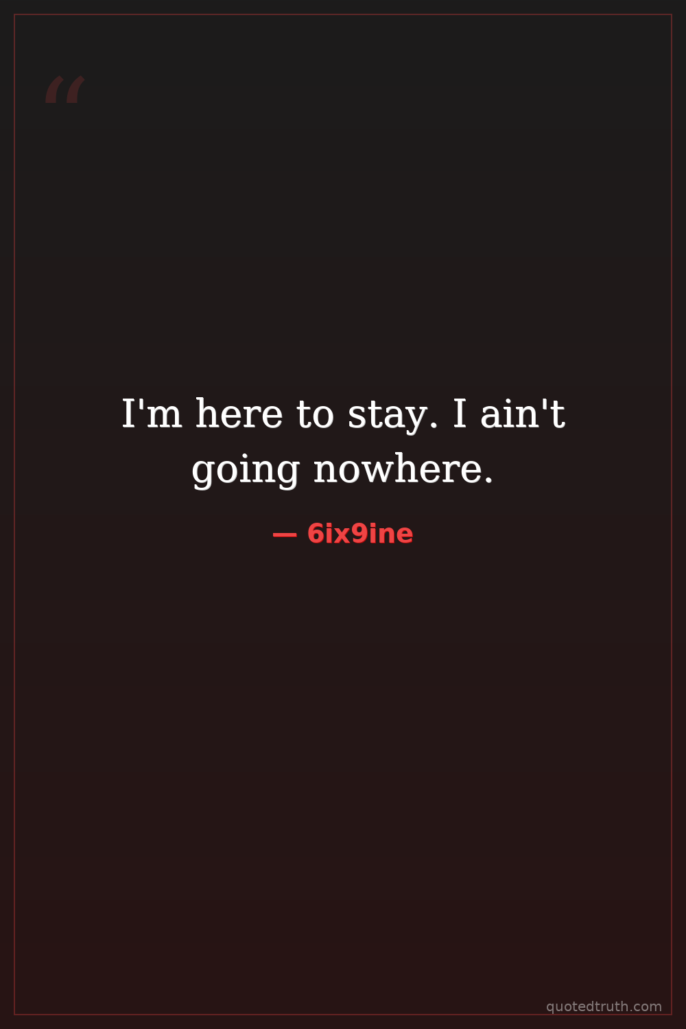 I'm here to stay. I ain't going nowhere.