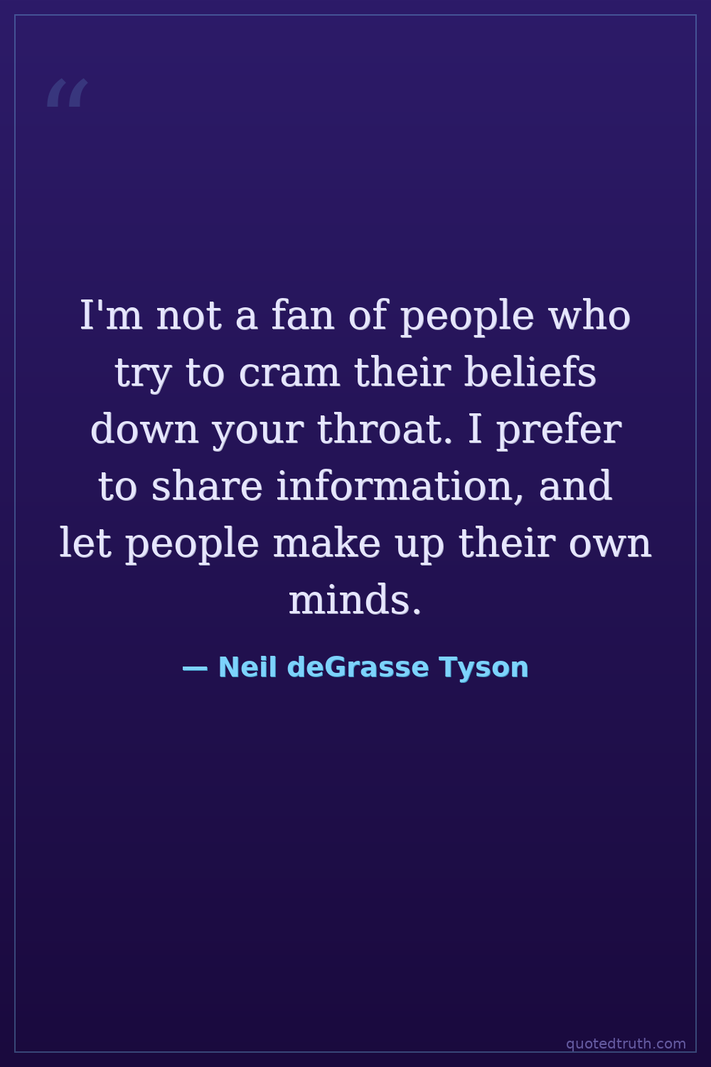 I'm not a fan of people who try to cram their beliefs down your throat. I prefer to share information, and let people make up their own minds.