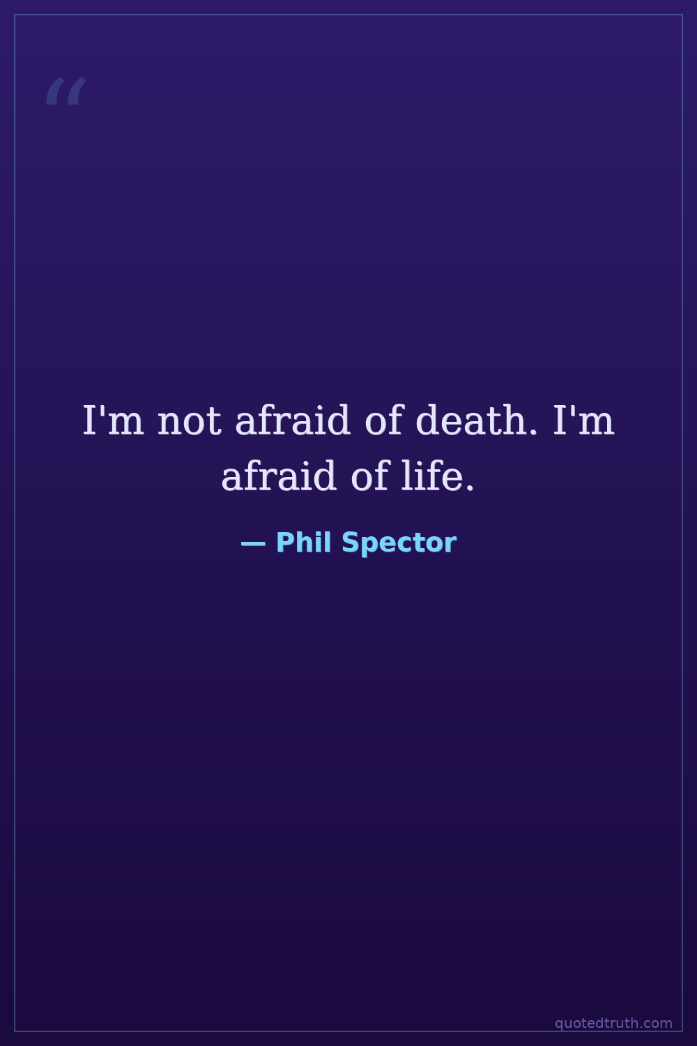 I'm not afraid of death. I'm afraid of life.