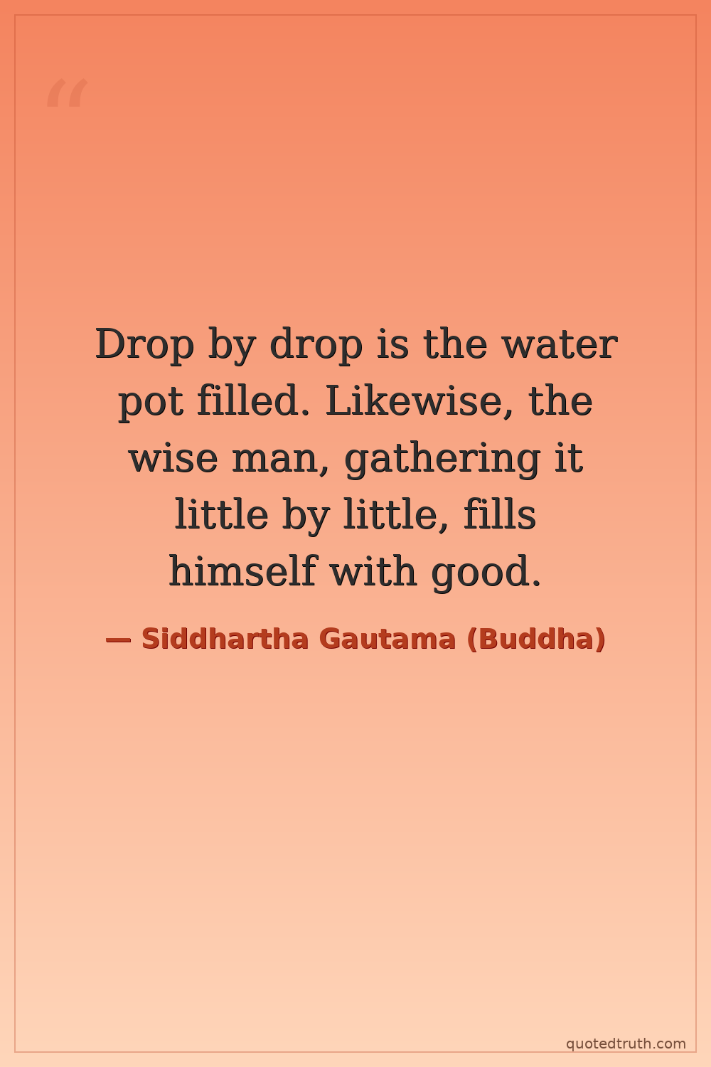 Drop by drop is the water pot filled. Likewise, the wise man, gathering it little by little, fills himself with good.