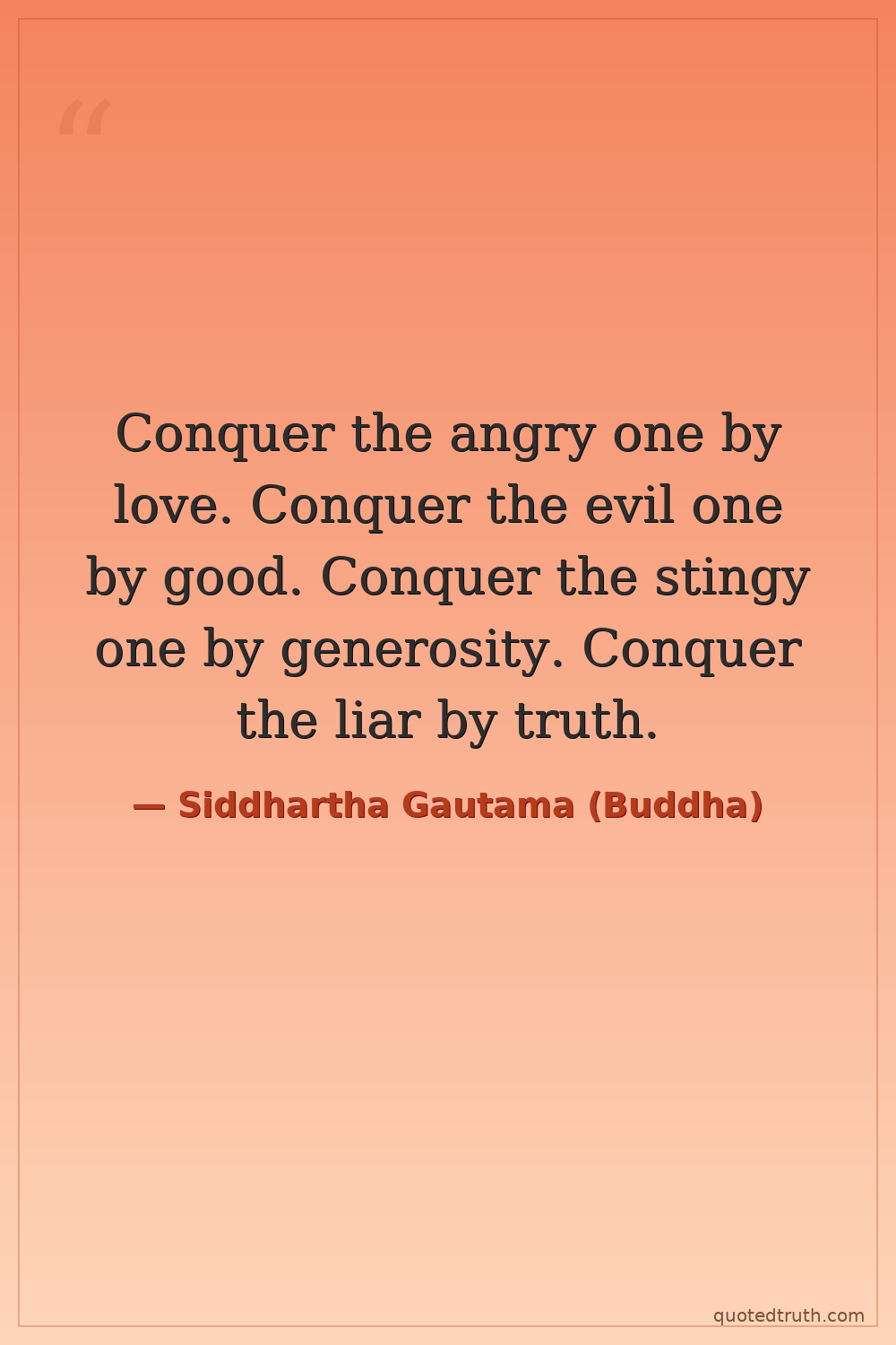 Conquer the angry one by love. Conquer the evil one by good. Conquer the stingy one by generosity. Conquer the liar by truth.