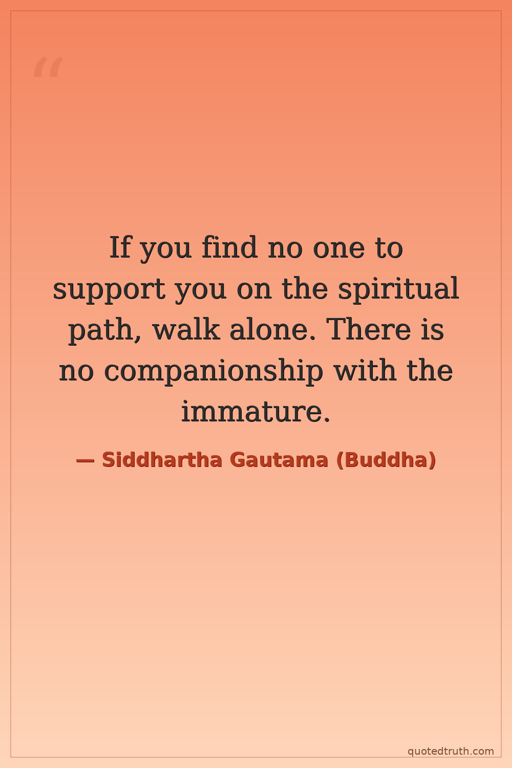 If you find no one to support you on the spiritual path, walk alone. There is no companionship with the immature.