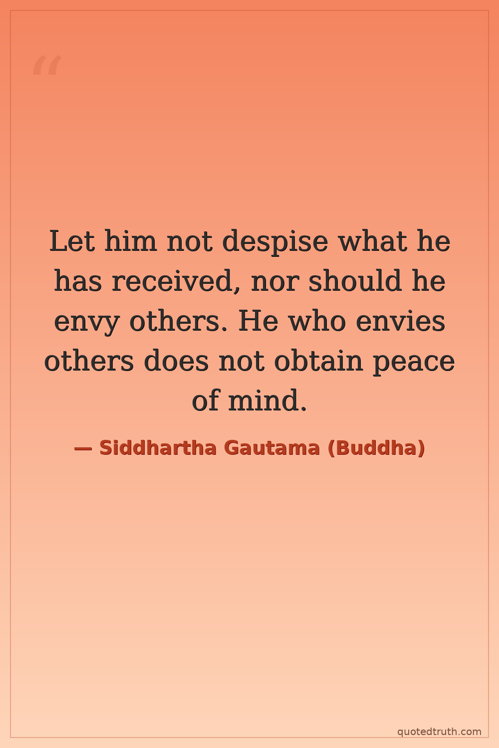 Let him not despise what he has received, nor should he envy others. He who envies others does not obtain peace of mind.