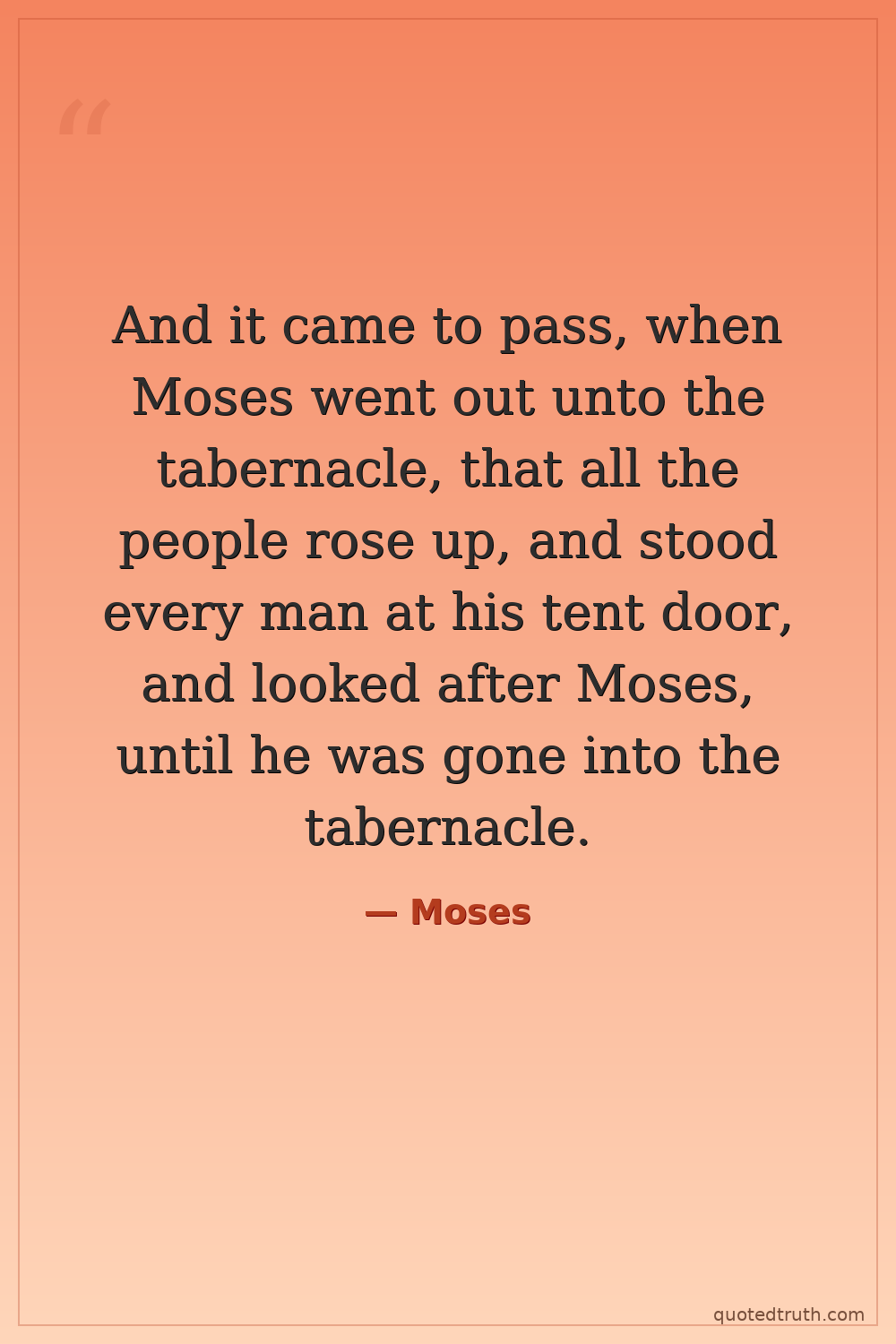 And it came to pass, when Moses went out unto the tabernacle, that all the people rose up, and stood every man at his tent door, and looked after Moses, until he was gone into the tabernacle.