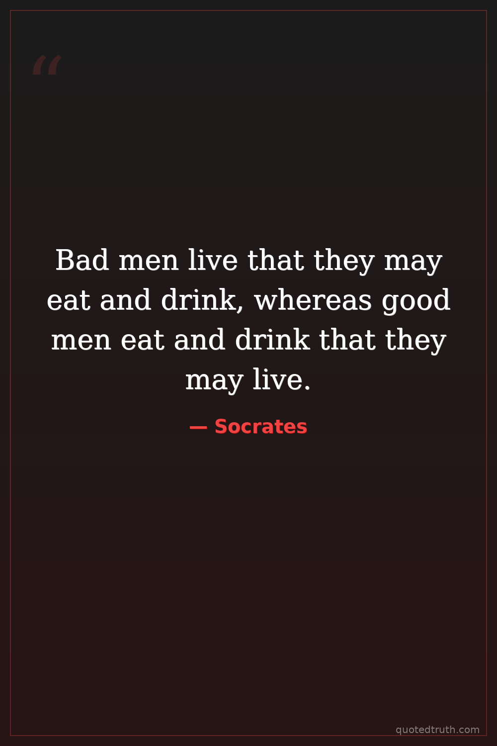 Bad men live that they may eat and drink, whereas good men eat and drink that they may live.