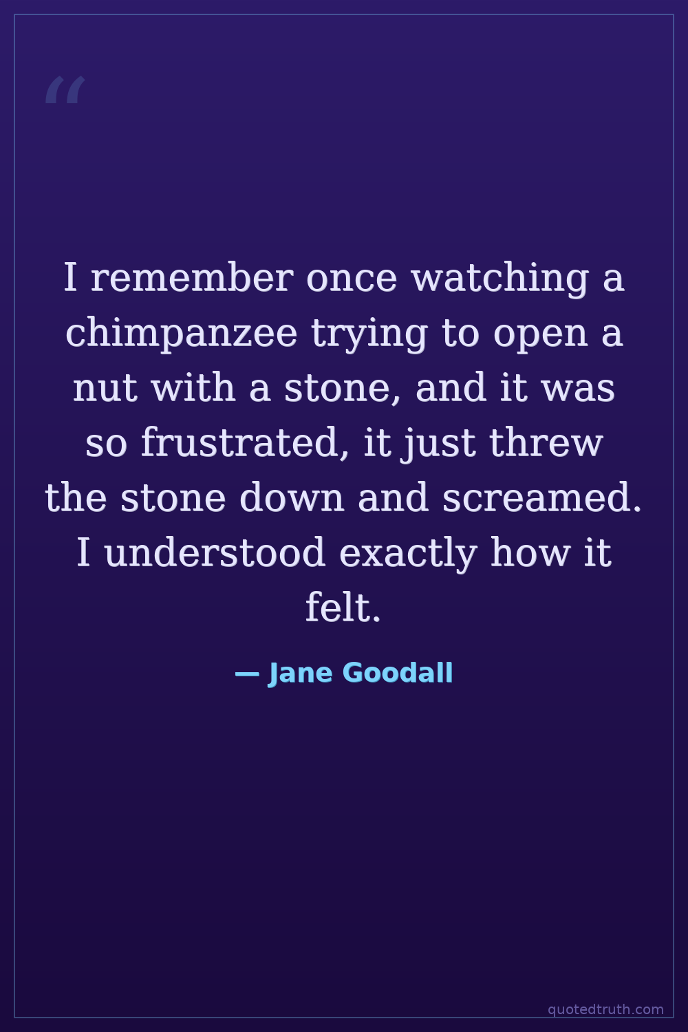 I remember once watching a chimpanzee trying to open a nut with a stone, and it was so frustrated, it just threw the stone down and screamed. I understood exactly how it felt.