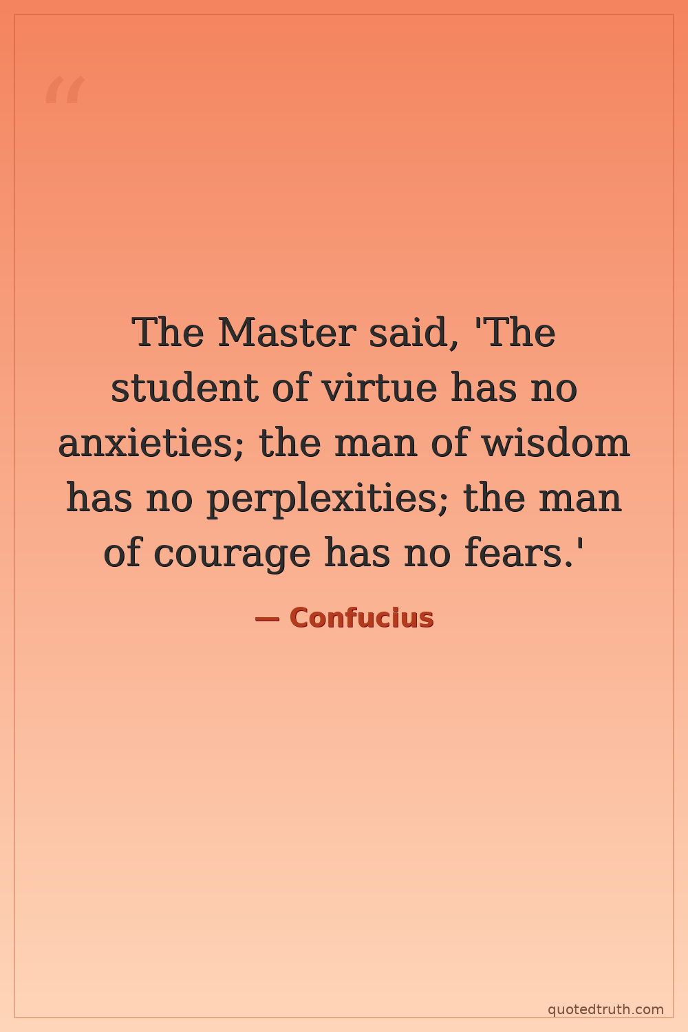 The Master said, 'The student of virtue has no anxieties; the man of wisdom has no perplexities; the man of courage has no fears.'