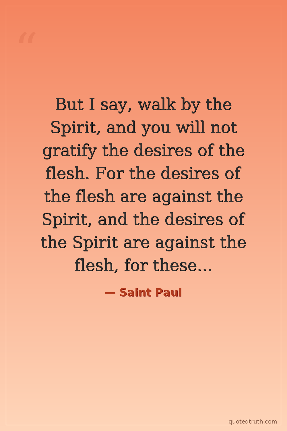 But I say, walk by the Spirit, and you will not gratify the desires of the flesh. For the desires of the flesh are against the Spirit, and the desires of the Spirit are against the flesh, for these are opposed to each other, to keep you from doing the things you want to do.