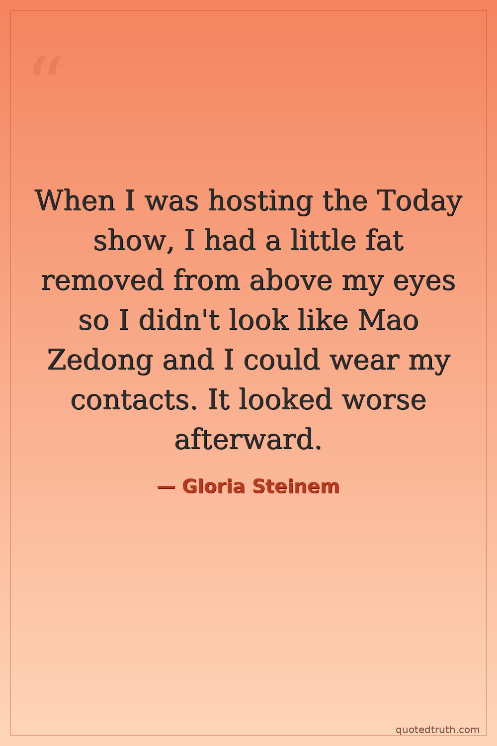 When I was hosting the Today show, I had a little fat removed from above my eyes so I didn't look like Mao Zedong and I could wear my contacts. It looked worse afterward.