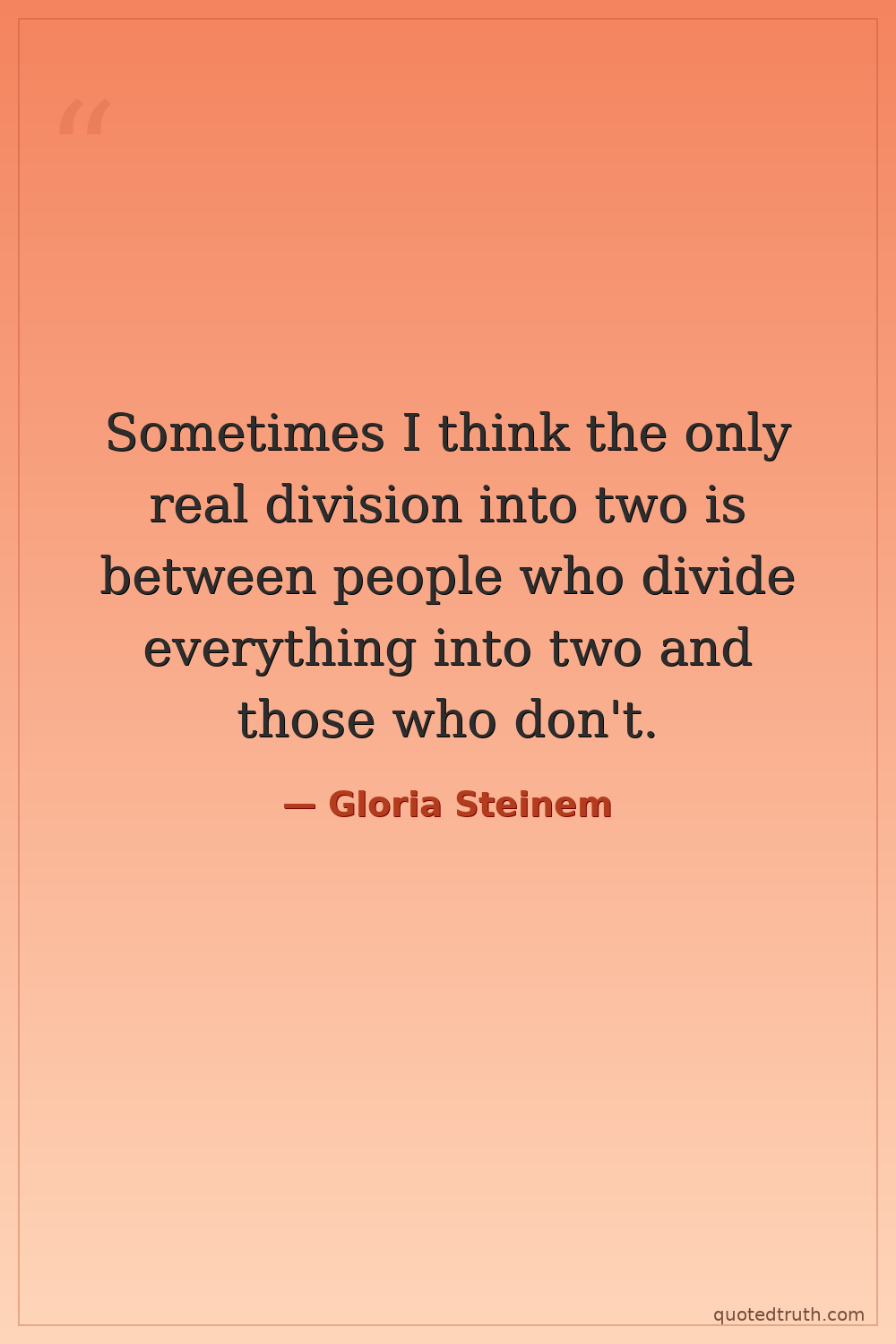 Sometimes I think the only real division into two is between people who divide everything into two and those who don't.
