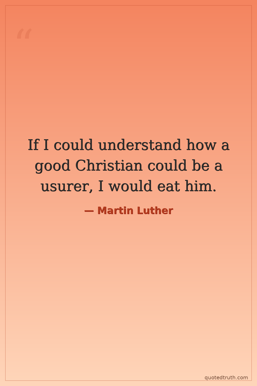 If I could understand how a good Christian could be a usurer, I would eat him.