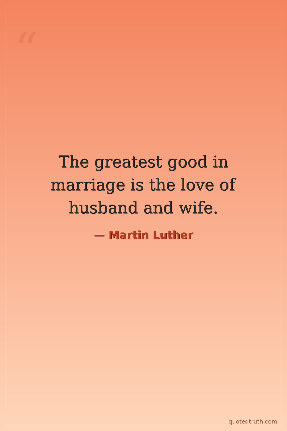 The greatest good in marriage is the love of husband and wife.