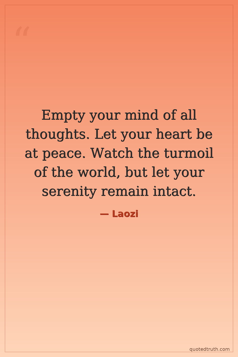 Empty your mind of all thoughts. Let your heart be at peace. Watch the turmoil of the world, but let your serenity remain intact.