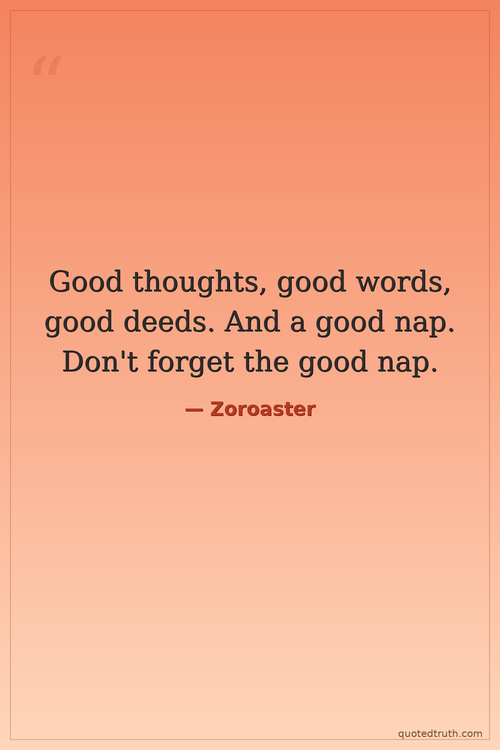Good thoughts, good words, good deeds. And a good nap. Don't forget the good nap.
