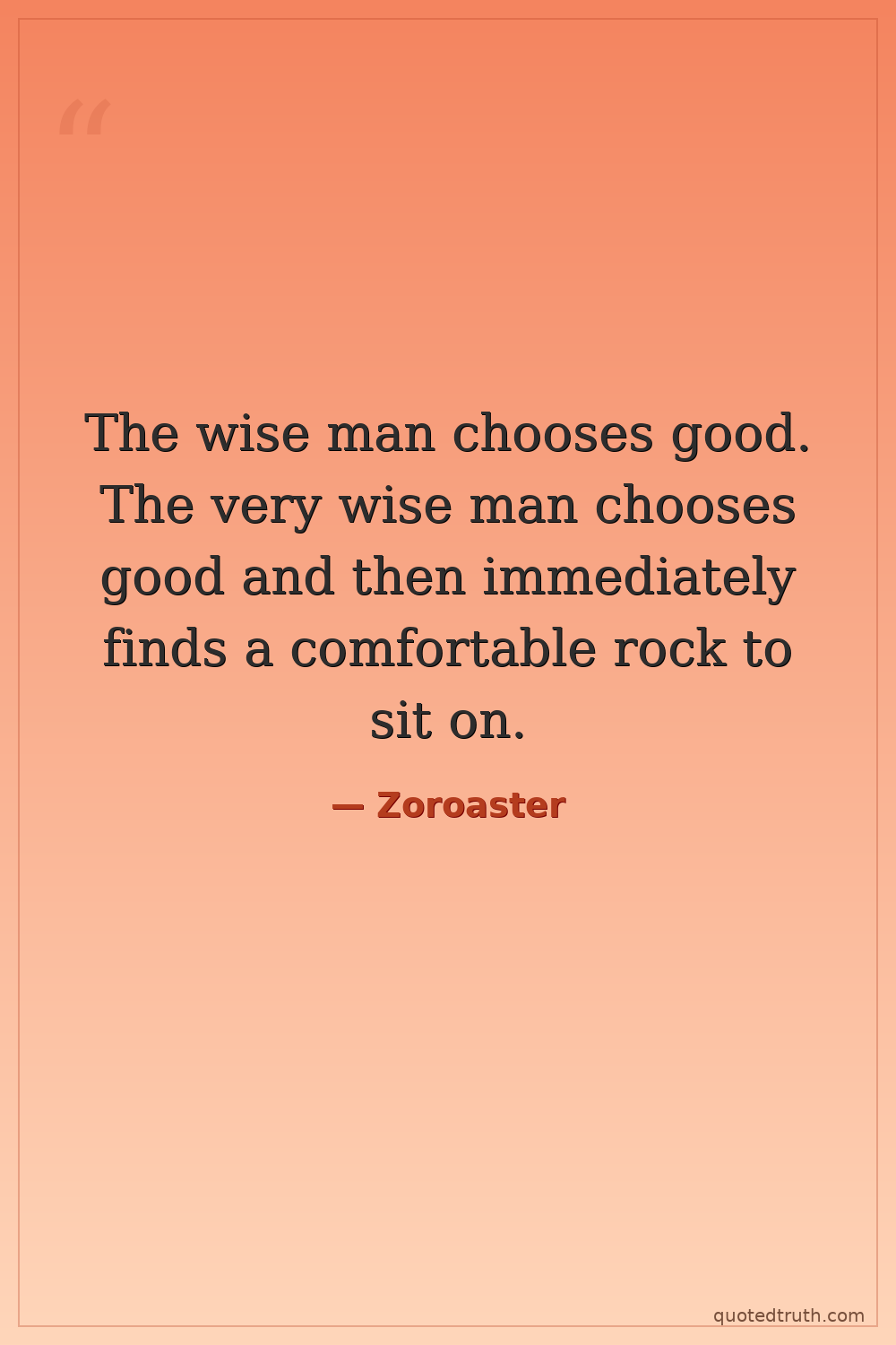 The wise man chooses good. The very wise man chooses good and then immediately finds a comfortable rock to sit on.
