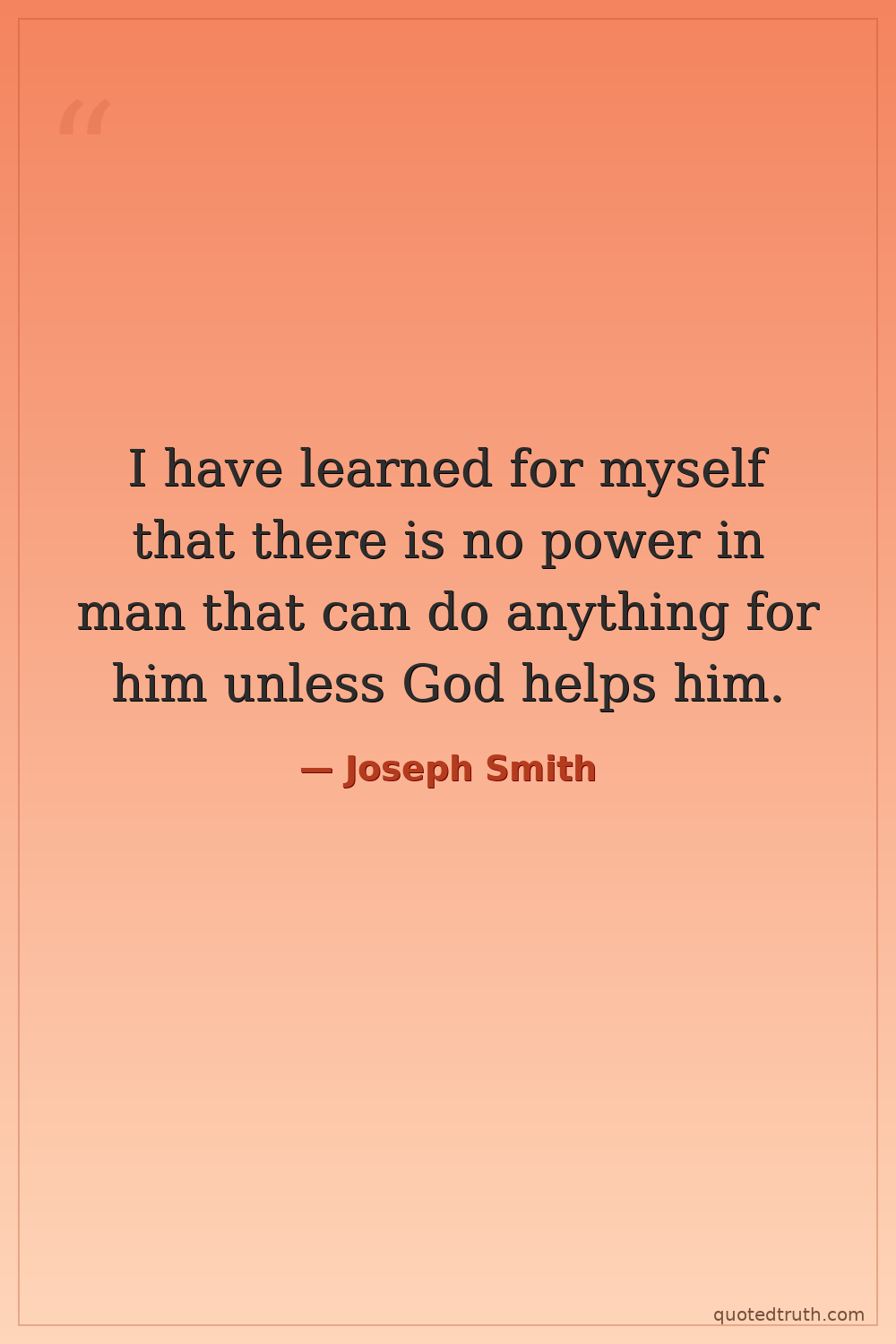 I have learned for myself that there is no power in man that can do anything for him unless God helps him.