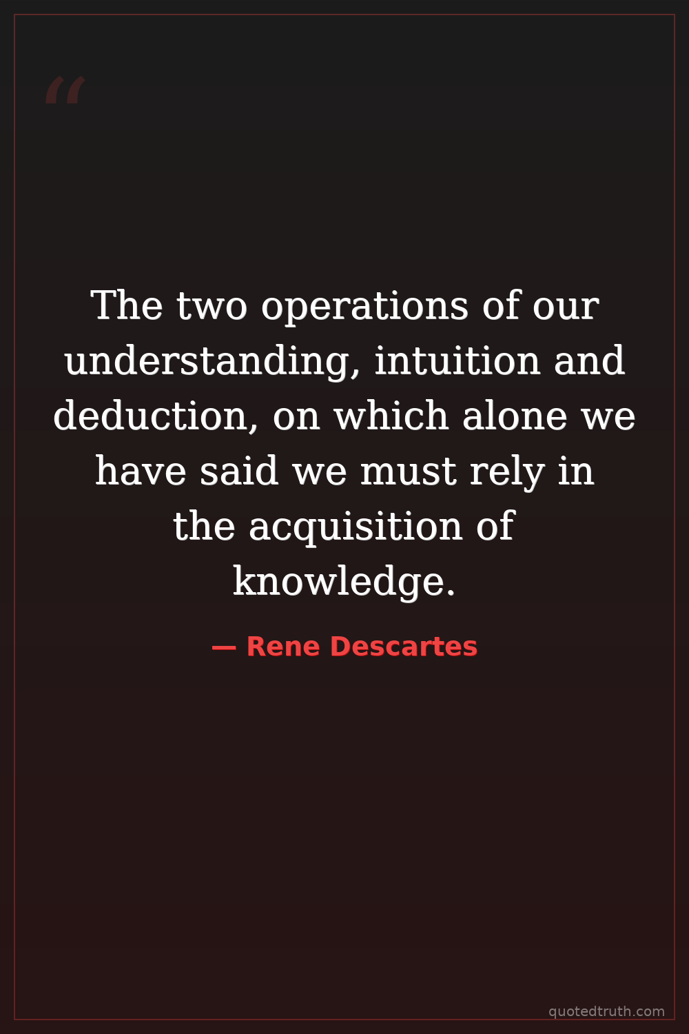 The two operations of our understanding, intuition and deduction, on which alone we have said we must rely in the acquisition of knowledge.