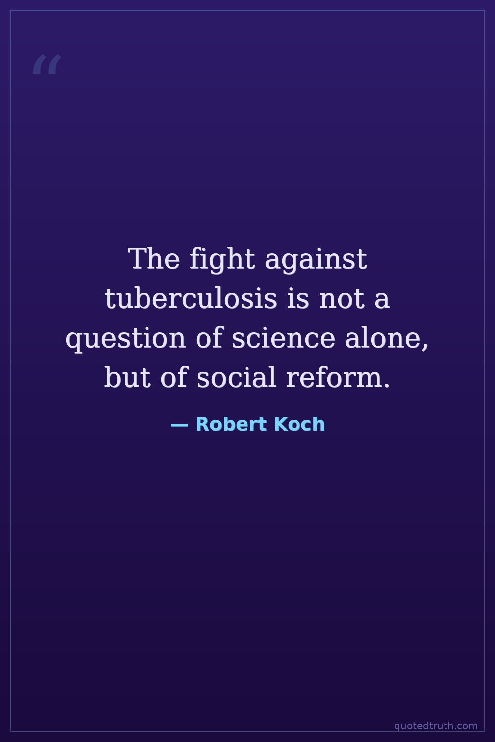 The fight against tuberculosis is not a question of science alone, but of social reform.