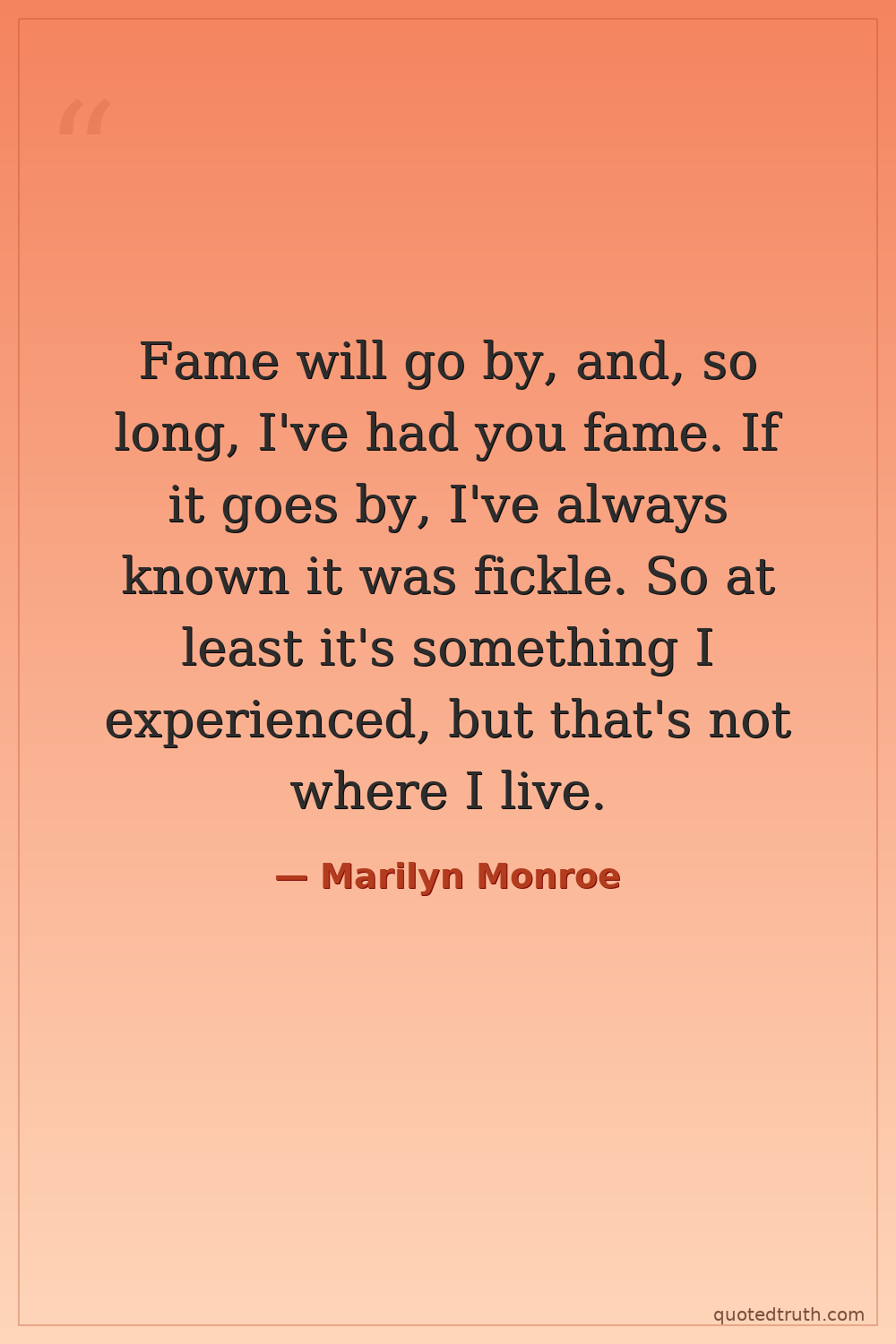 Fame will go by, and, so long, I've had you fame. If it goes by, I've always known it was fickle. So at least it's something I experienced, but that's not where I live.