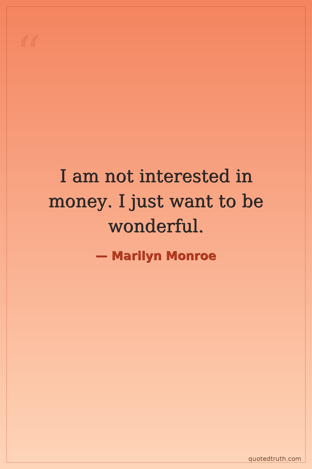 I am not interested in money. I just want to be wonderful.