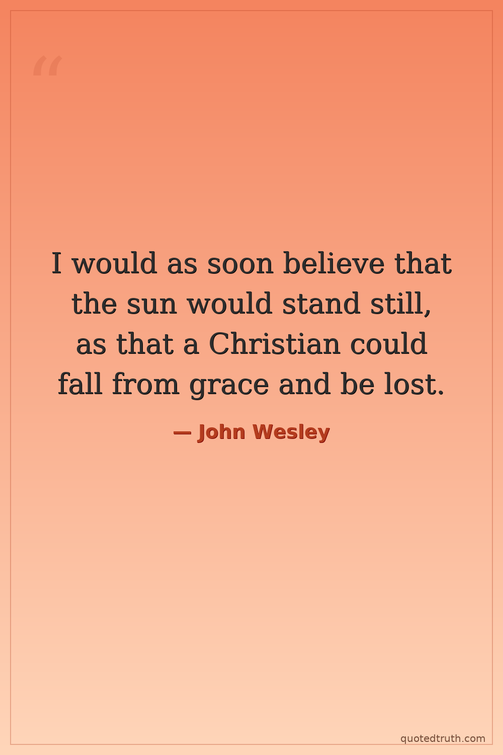 I would as soon believe that the sun would stand still, as that a Christian could fall from grace and be lost.