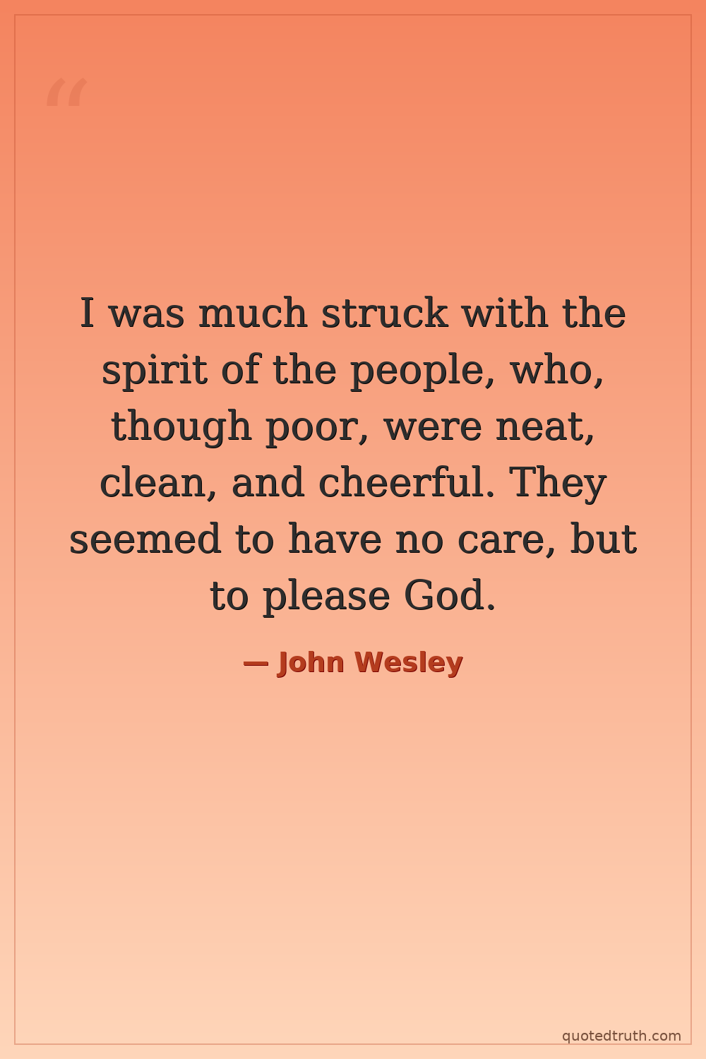 I was much struck with the spirit of the people, who, though poor, were neat, clean, and cheerful. They seemed to have no care, but to please God.