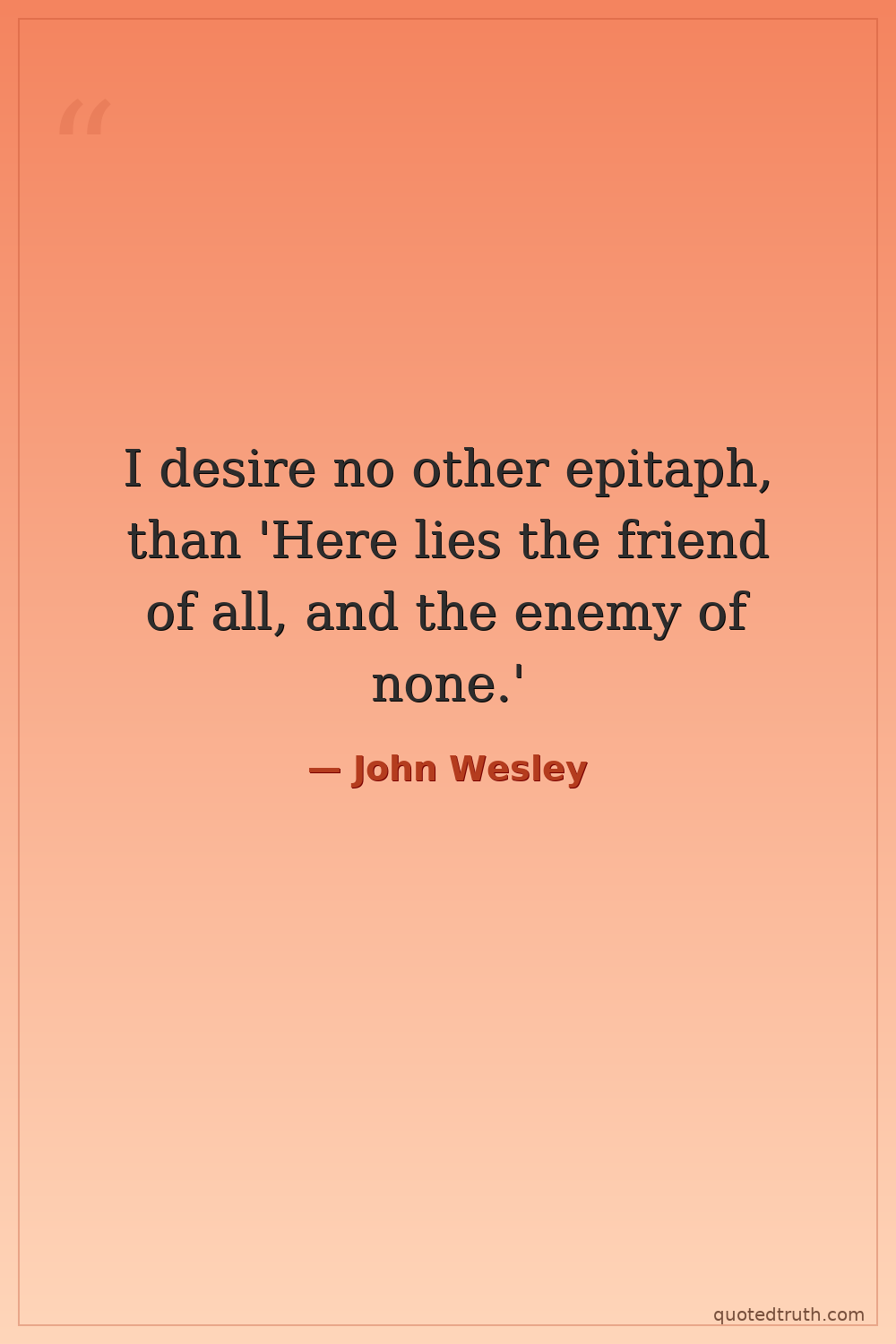 I desire no other epitaph, than 'Here lies the friend of all, and the enemy of none.'