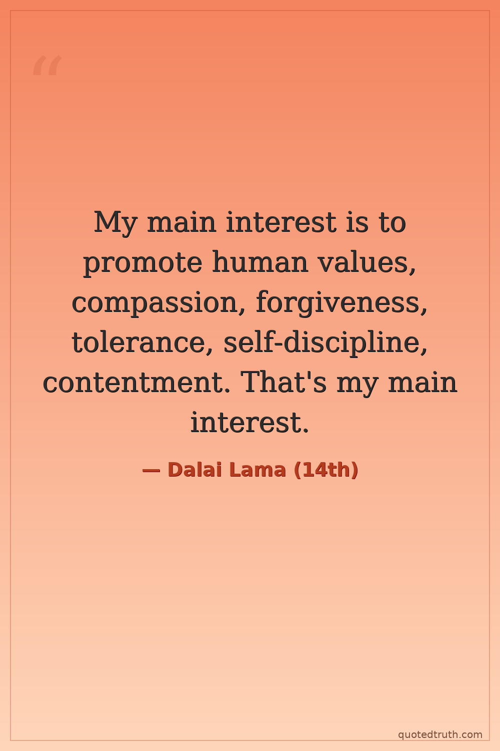 My main interest is to promote human values, compassion, forgiveness, tolerance, self-discipline, contentment. That's my main interest.